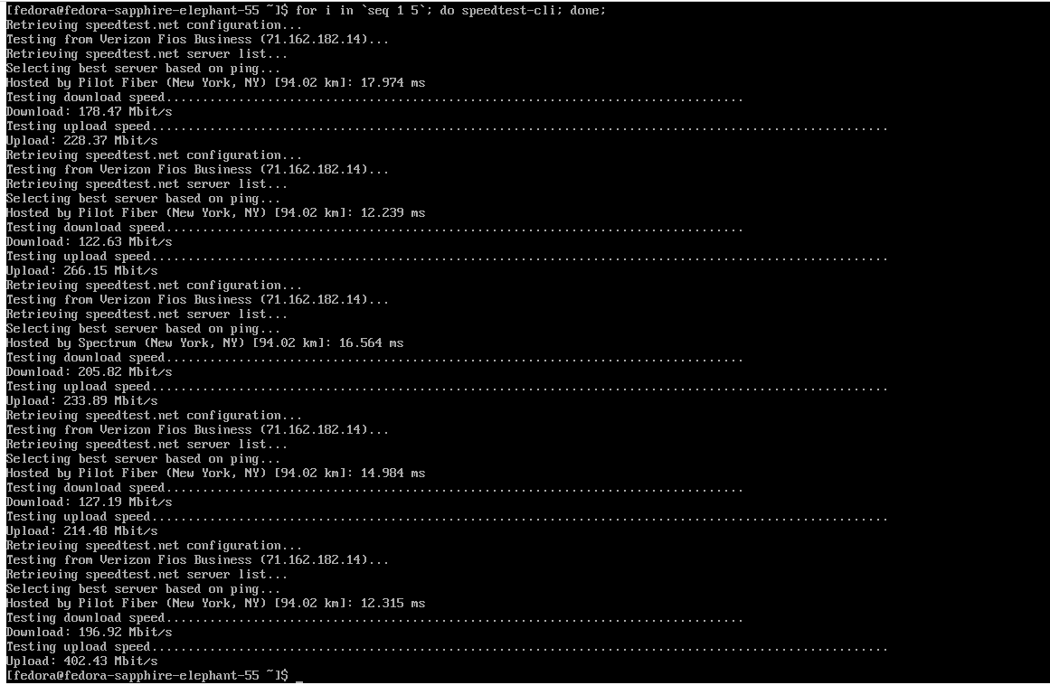 sudo dnf install speedtest-cliThis takes about a minute to run on my system so it's a good test by itself.