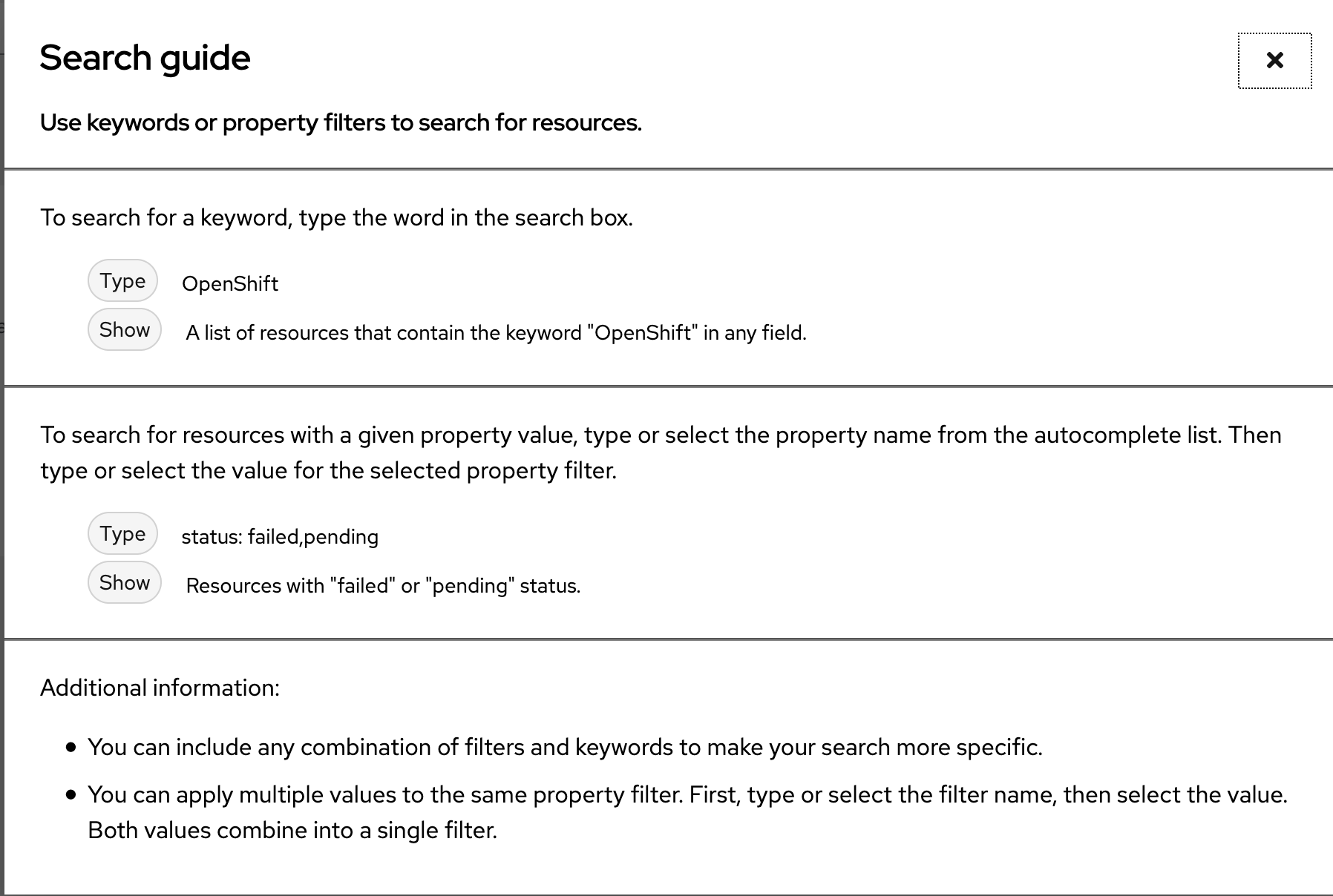 There is also a question-mark on the search bar that will help guide us for different ways to search. Here are some sample searches to get us started. The search mechanism is intuitive in a lot of ways (it will autocomplete).